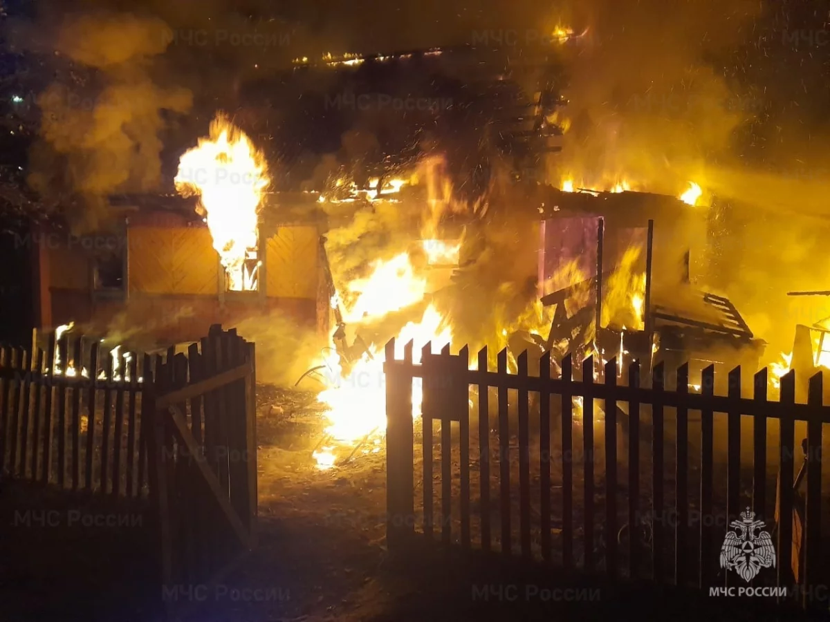 Примерно в 3:15 загорелся частный одноэтажный дом на улице Горького. Огонь практически полностью уничтожил деревянную постройку.