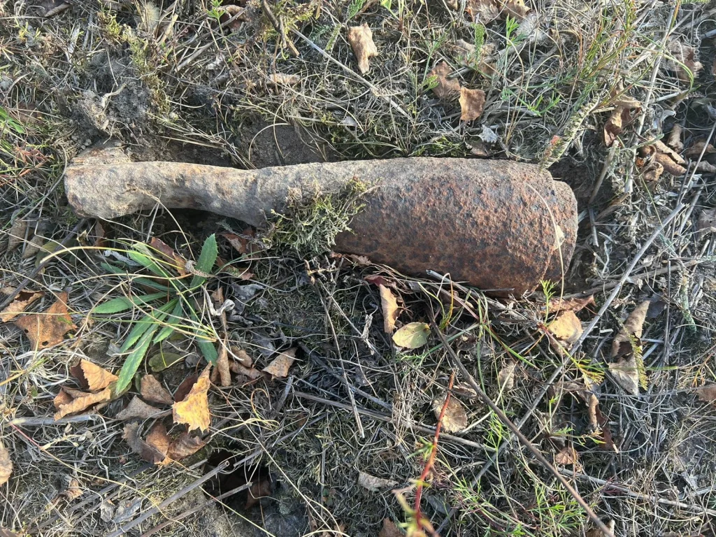 Минометная мина находилась в поле в трех километрах от деревни Пыренка Думиничского района.