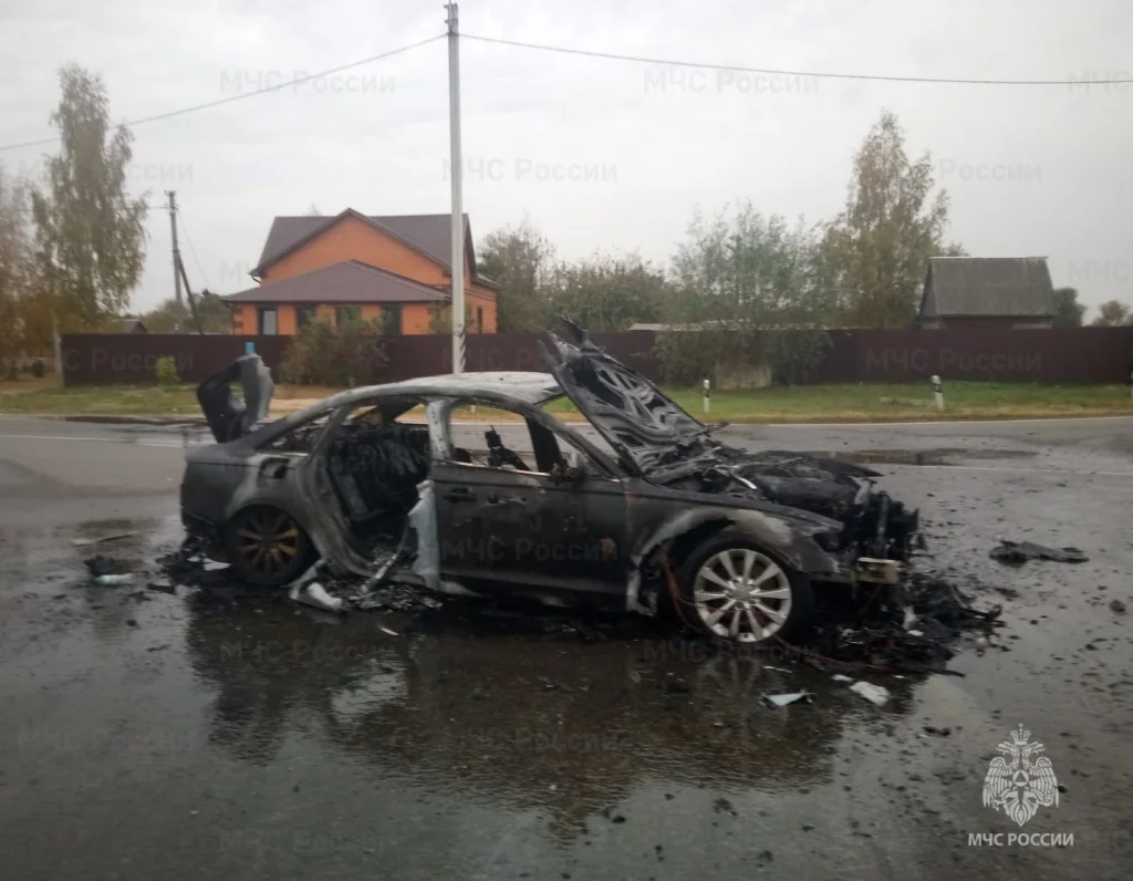 Автомобиль «Ауди» сгорел в деревне Хохловка Перемышльского района около 7:00 в пятницу, 4 октября.