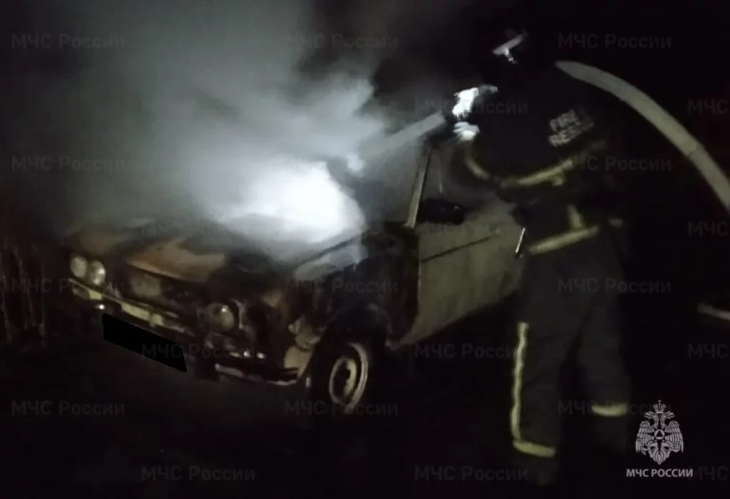 Машина горела на дороге между Кондрово и деревней Никольское.