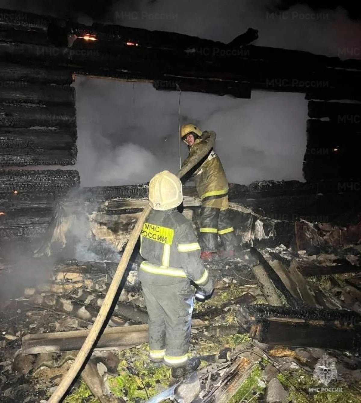 Огонь полностью уничтожил деревянный дом, разделенный на две квартиры.