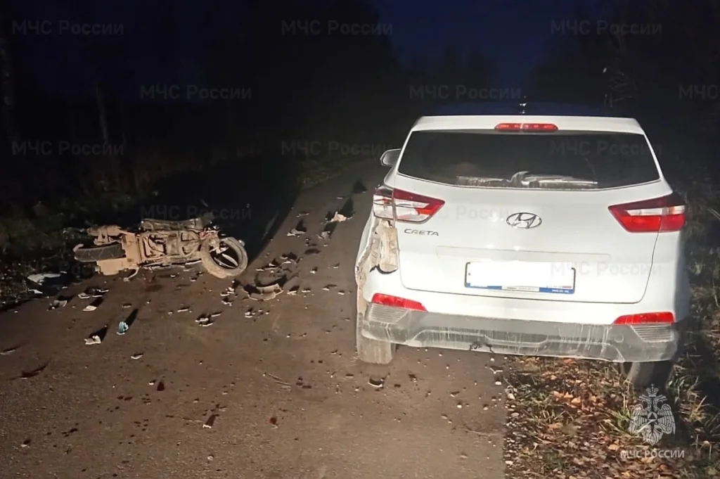 Около 16:50 в четверг, 31 октября, на дороге Озеро – Кострамово – Сулихово 61-летний мужчина ехал на скутере и врезался в припаркованный «Хендай Крета».