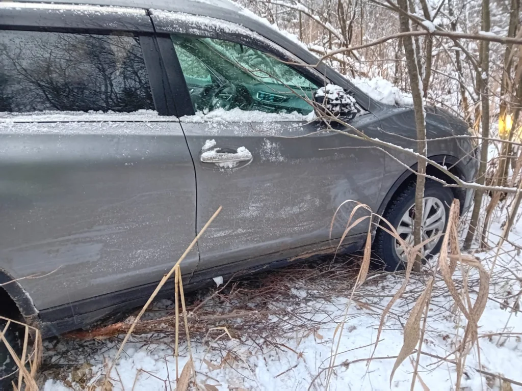 Водитель на «Ниссане» не справился с управлением, съехал в кювет, где движение остановили кусты.