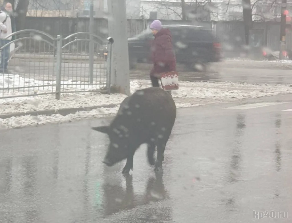 На Московской кабана заметили, когда он переходил проезжую часть по пешеходному переходу.