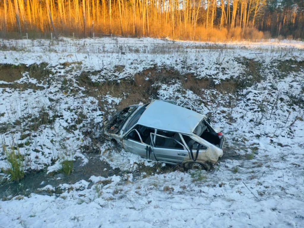 Машина съехала в правый кювет и перевернулась.