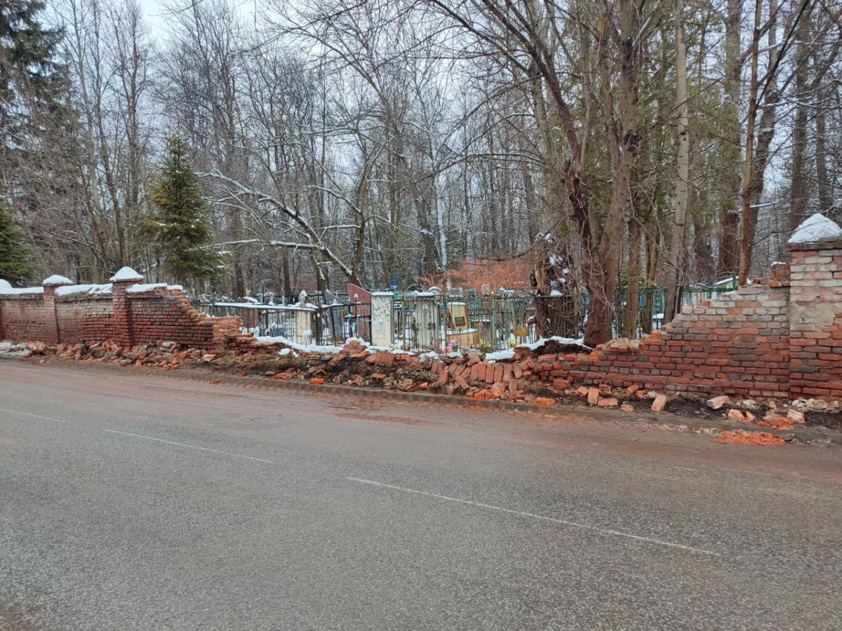 В субботу, 30 ноября обвалилась ещё одна часть ограды Пятницкого кладбища в Калуге.