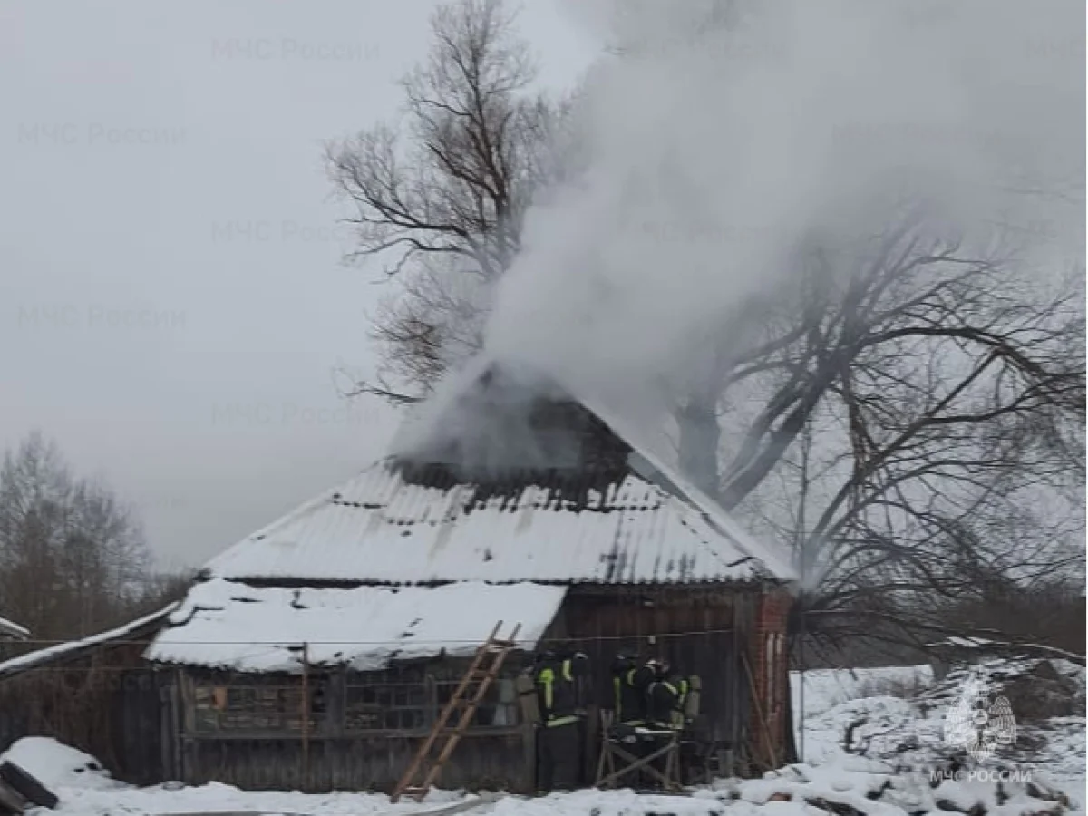 Днем 4 декабря деревянная постройка горела в деревне Костешево Козельского района.