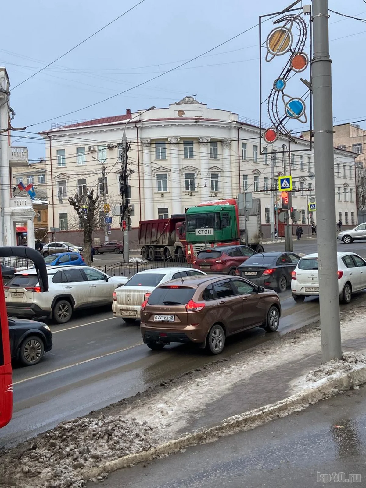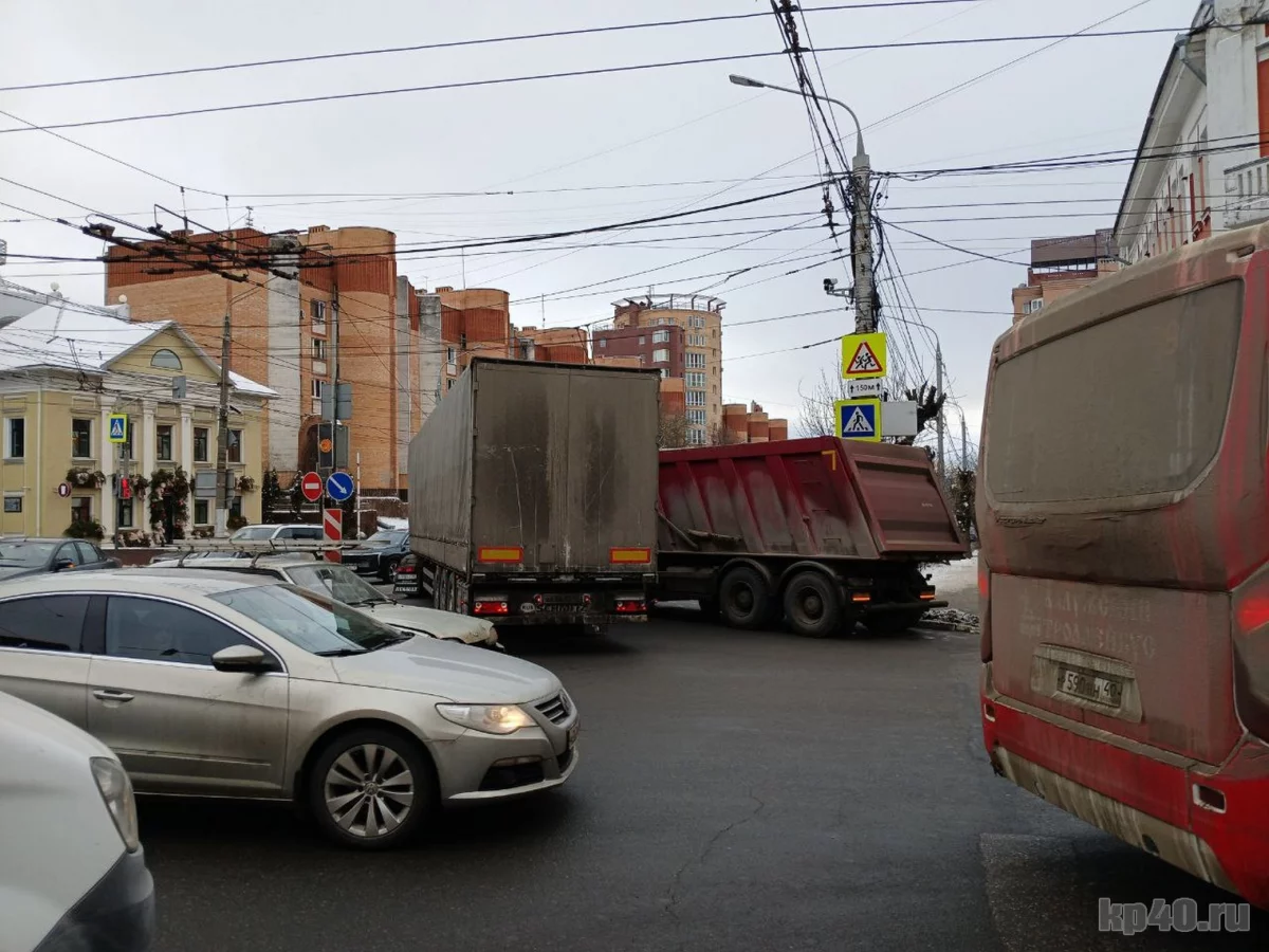 В Калуге два столкнувшихся грузовика полностью перекрыли улицу Гагарина