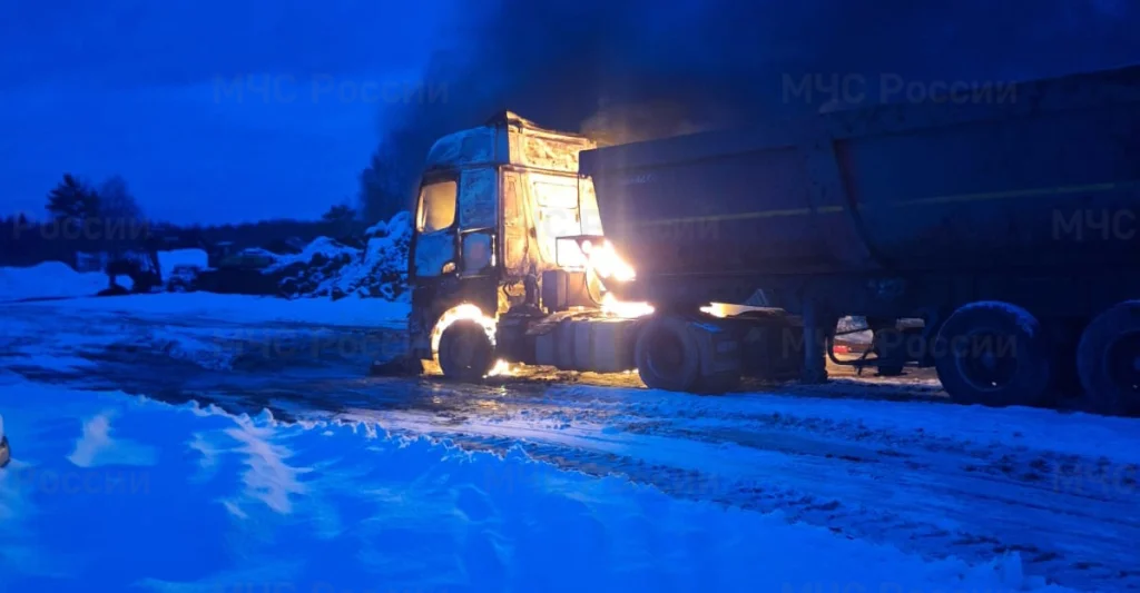Кабина большегруза горела утром 17 декабря в деревне Вязищи Износковского района.