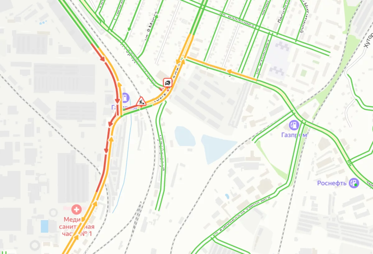 Большая пробка наблюдается на Глаголева. Там автомобилисты жалуются на запаркованный правый ряд.