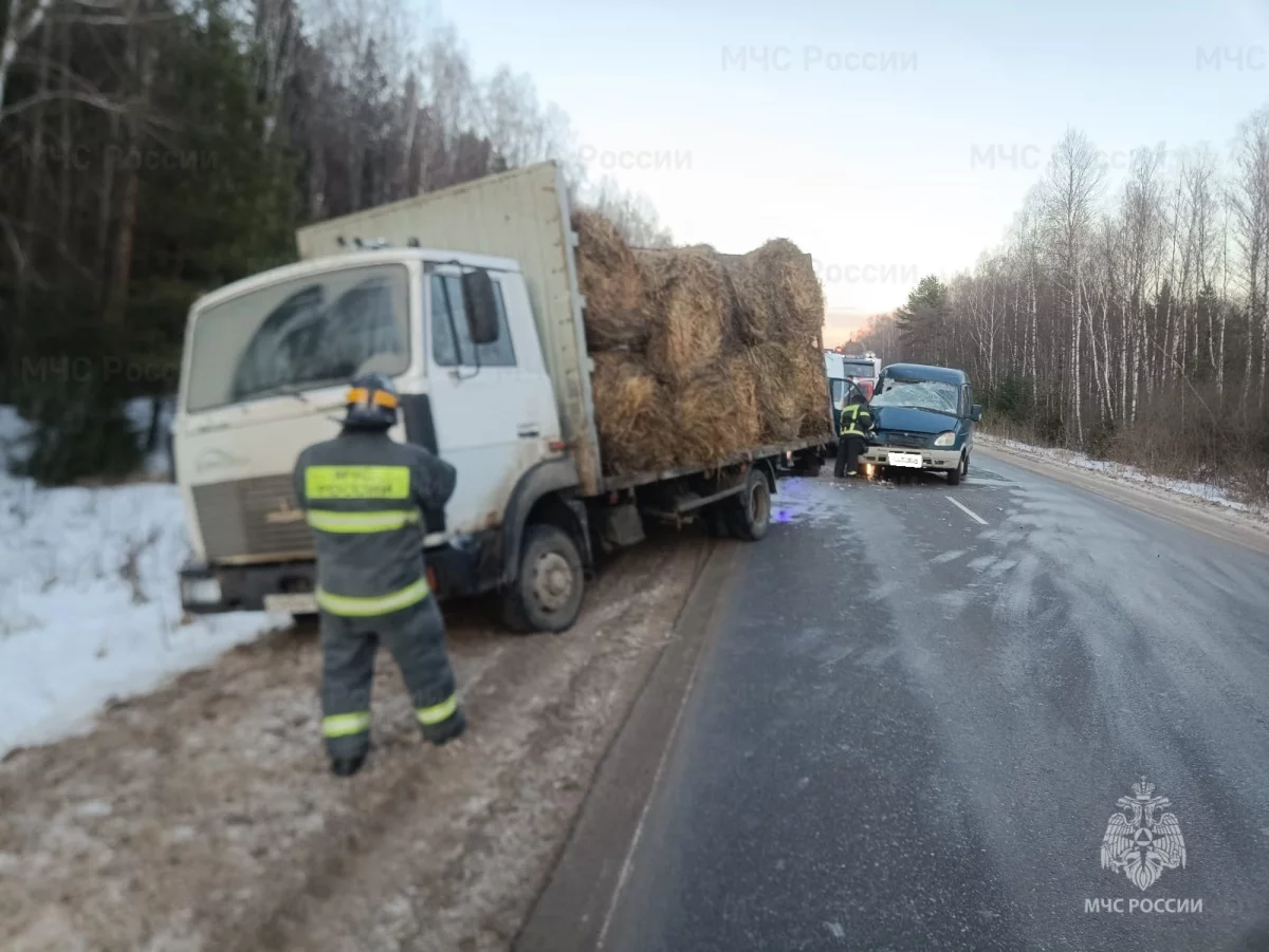 Водители «Газели» и МАЗа, перевозившего тюки с соломой, не разъехались в Тарусском районе.