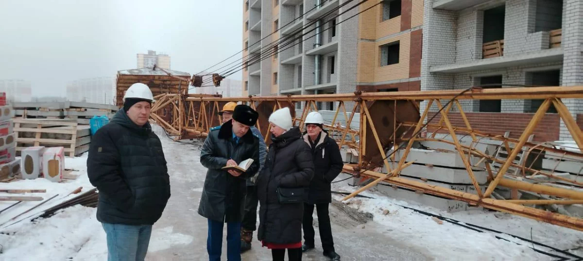 Башенный кран упал на строительной площадке на улице Фомушина.