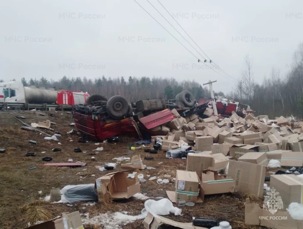 Две фуры столкнулись на трассе в Думиничском районе