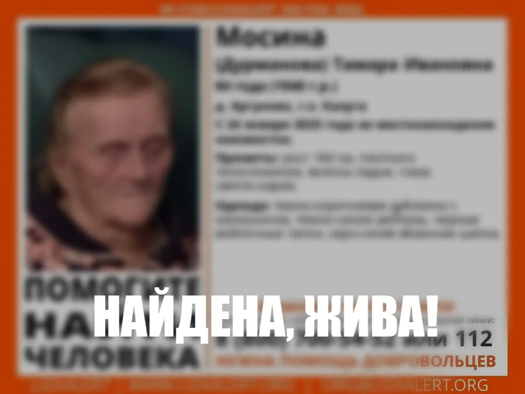 В ночь на субботу, 25 января, волонтеры поисково-спасательного отряда «ЛизаАлерт» сообщили, что Тамара Мосина найдена.