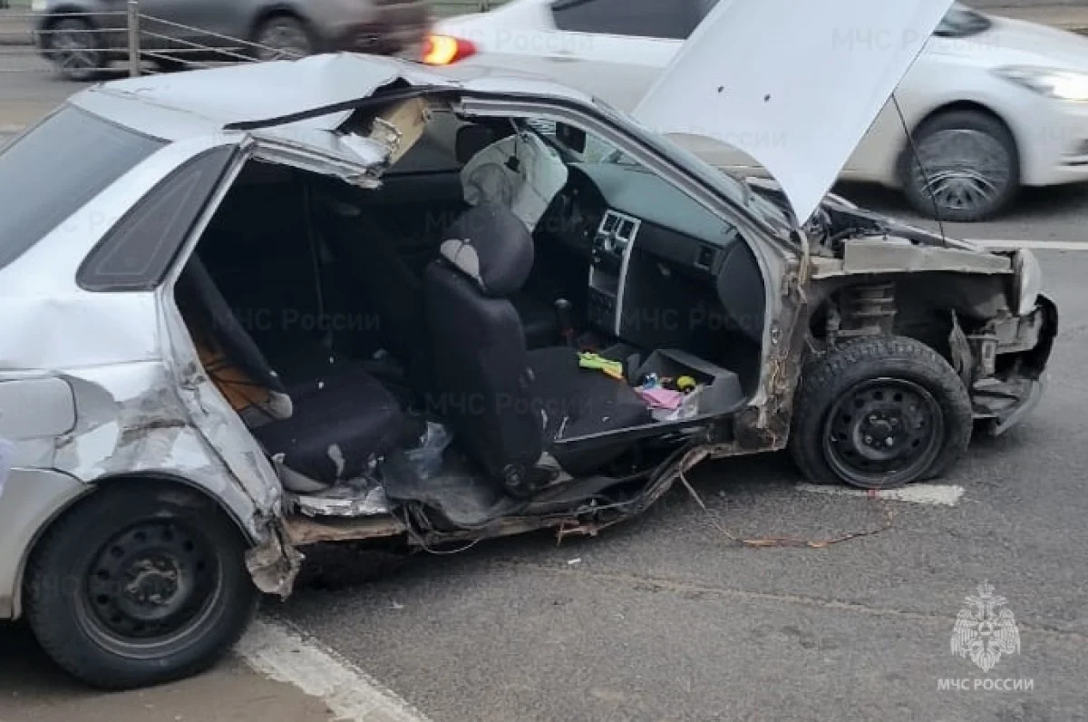 По предварительным данным, водитель «Приоры» врезался в металлический отбойник в районе пересечения подъезда от трассы М3 «Украина» и проезда Домостроителей.