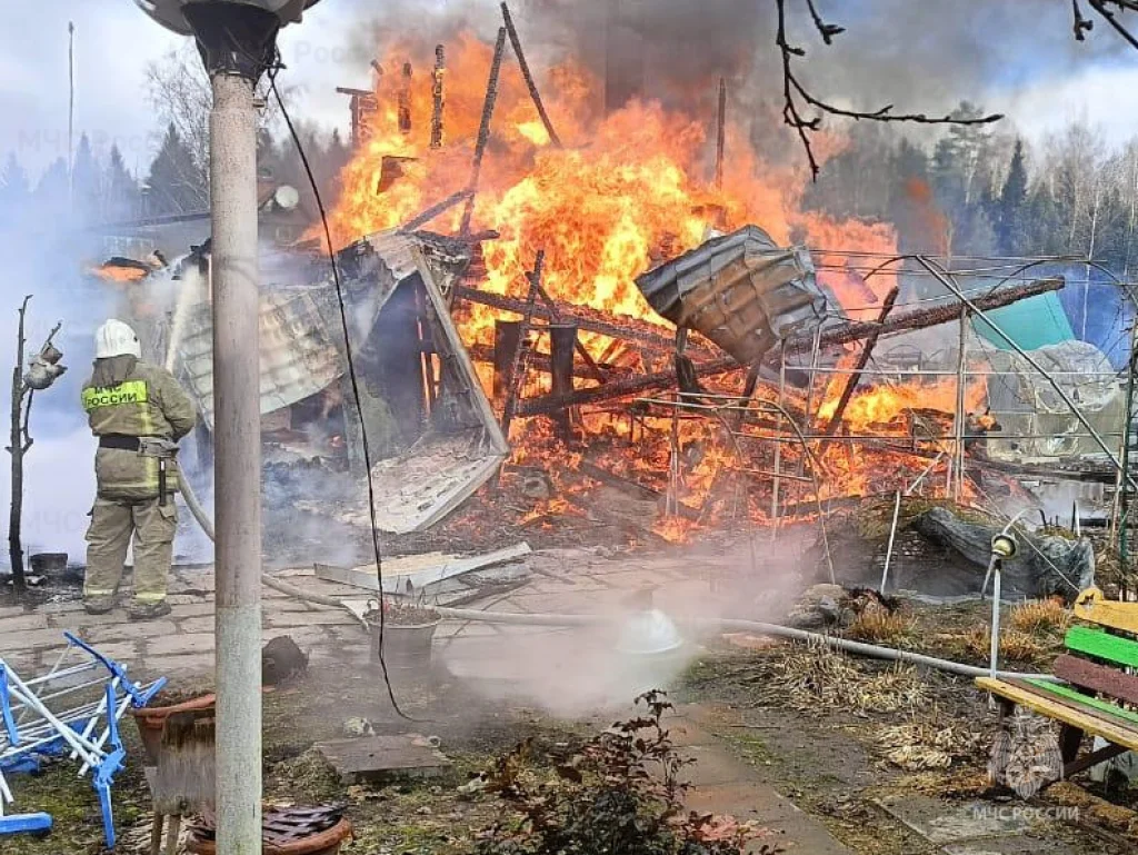 Деревянная постройка сгорела на территории СНТ «Икан» в Детчино.