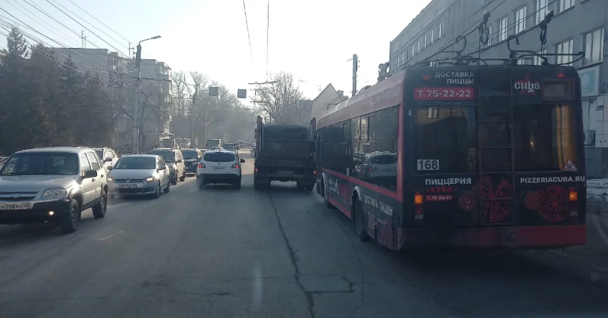 По сообщению очевидцев, троллейбус остался без зеркала заднего вида и в результате столкновения с грузовиком.