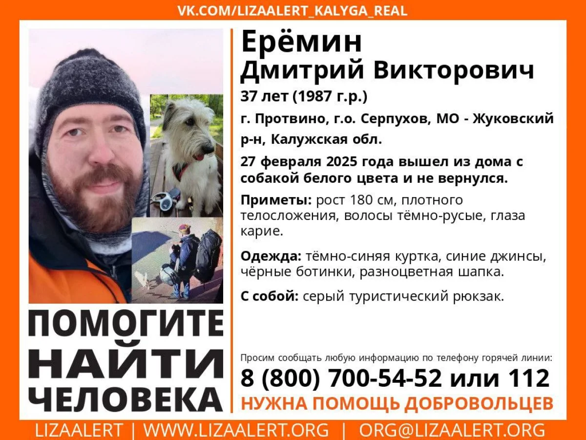 Волонтеры ЛизаАлерт просят помощи. Разыскивается Ерëмин Дмитрий Викторович, 37 лет.