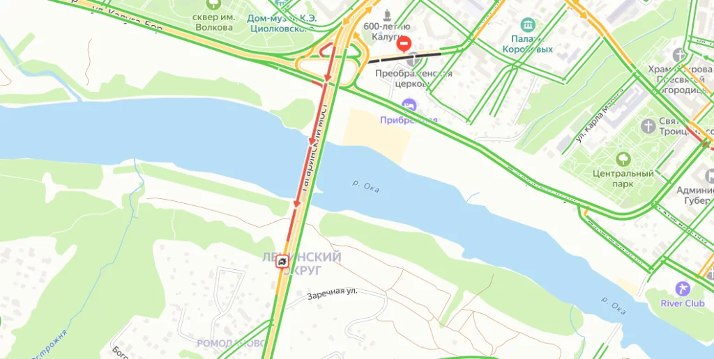 Движение из центра затруднено, пробка растянулась до улицы Гагарина.