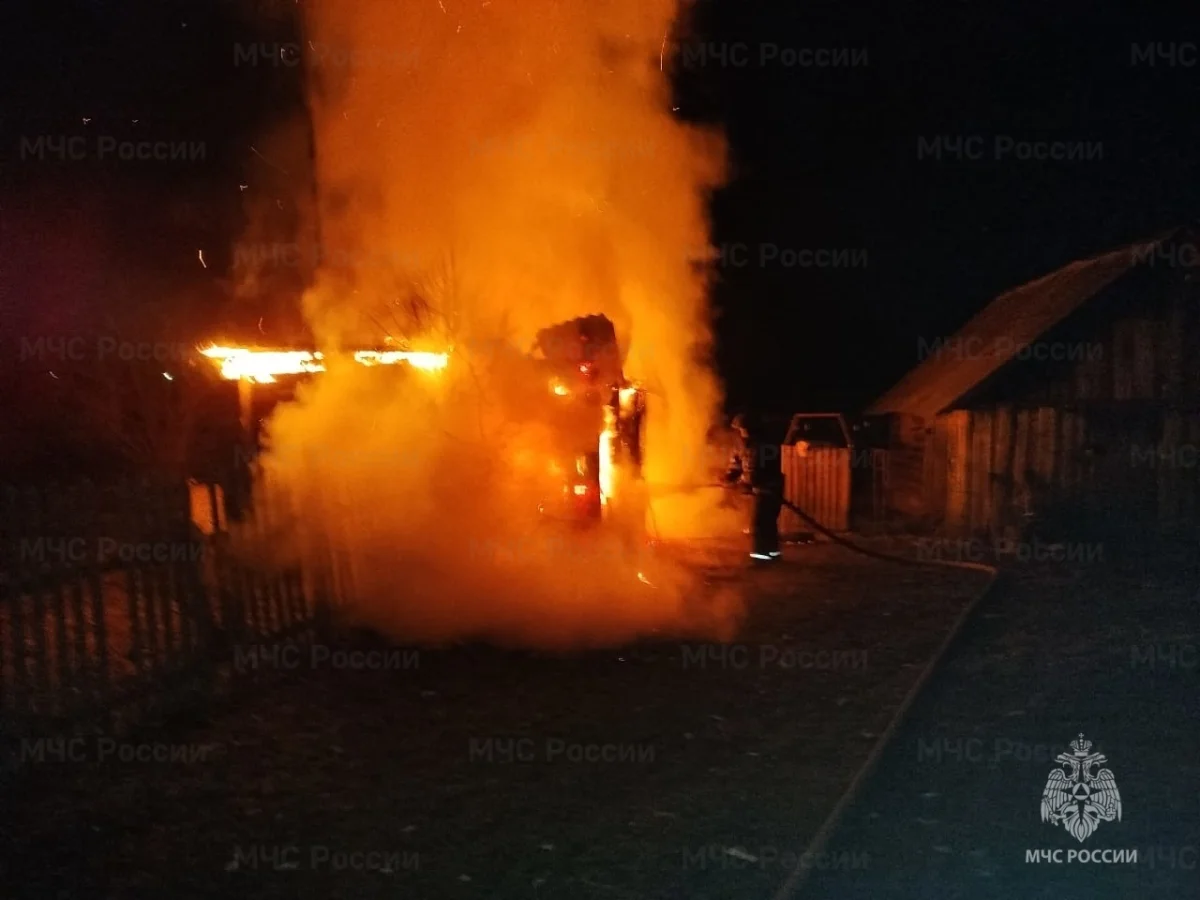 Огонь уничтожил деревянную постройку в деревне Гусево Медынского района поздно вечером 8 марта.