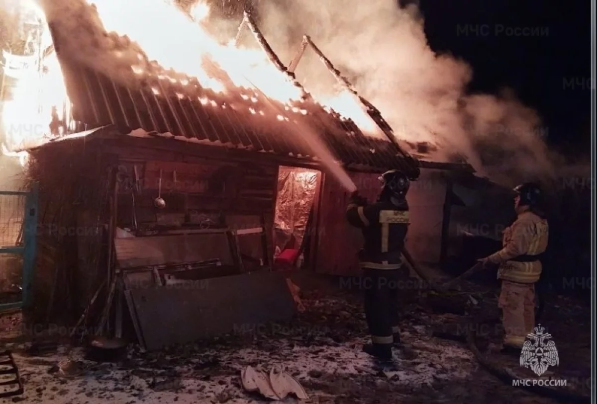 Огонь уничтожил деревянное здание, но обошлось без пострадавших, рассказали в ГУ МЧС по Калужской области.