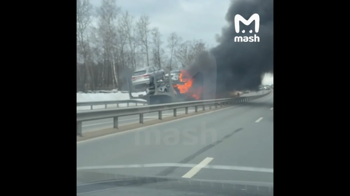Автовоз с машинами из Калуги сгорел в Подмосковье