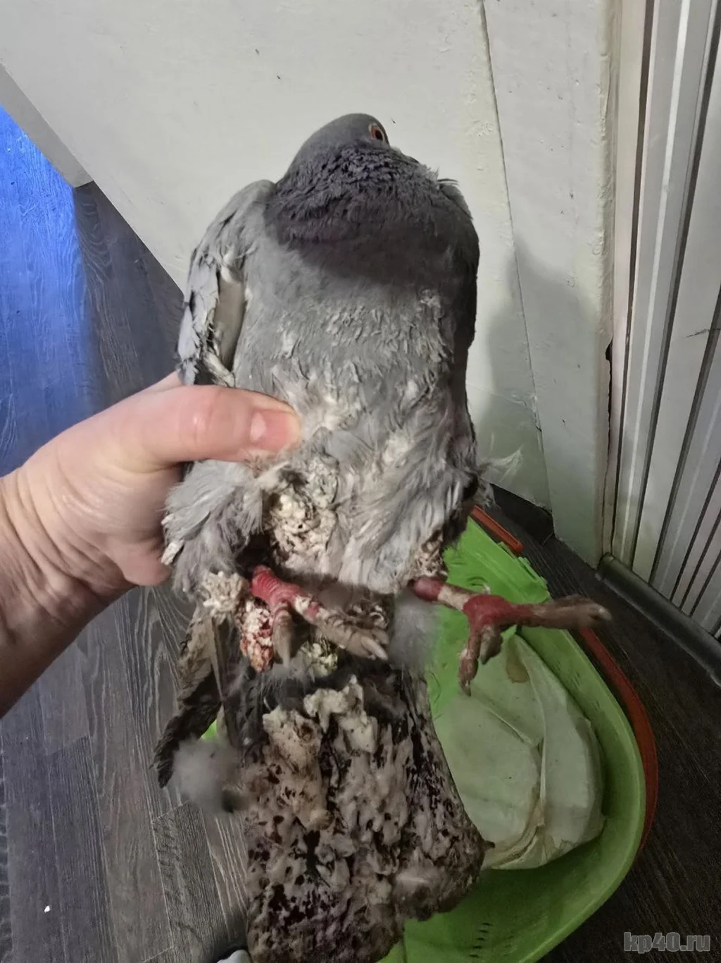 Калужанка подобрала птицу и выхаживает уже несколько дней. Голубя удалось очистить от пены.