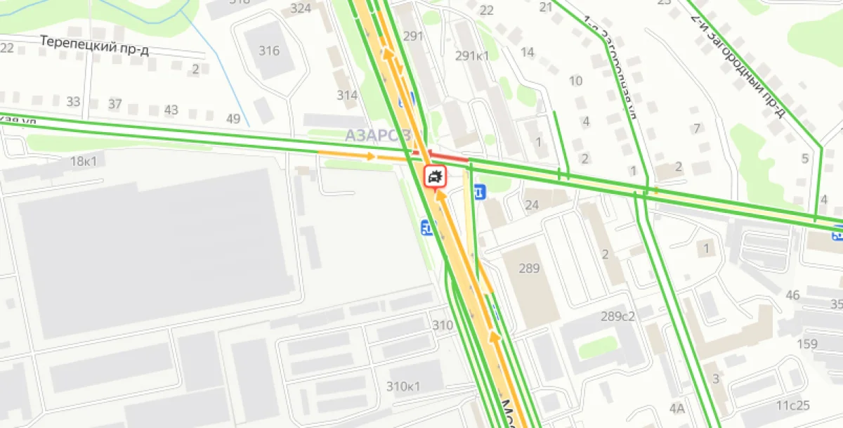 Очевидцы сообщают о ДТП в районе перекрестка с улицей Азаровской.