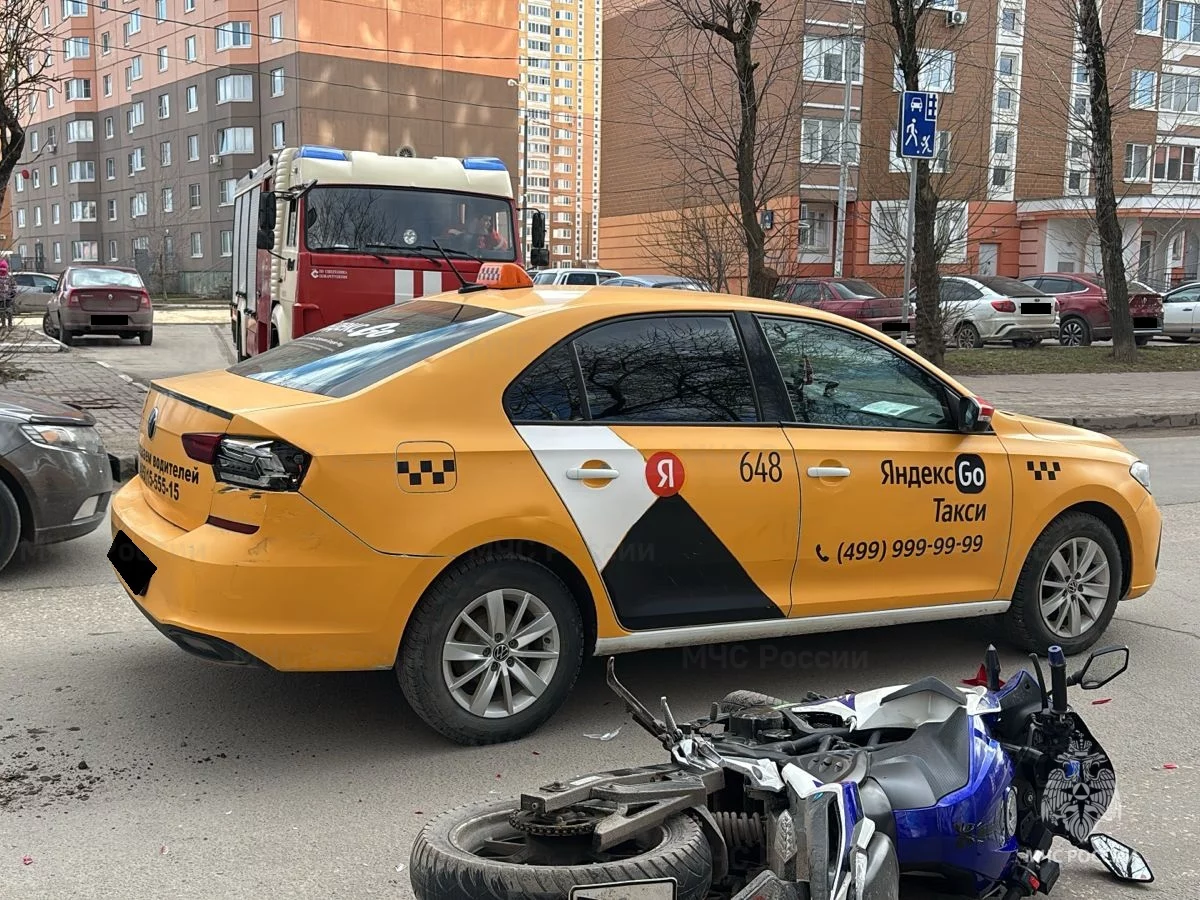 Там столкнулись таксист на «Фольксвагене Поло» и байкер на «Рейсере».