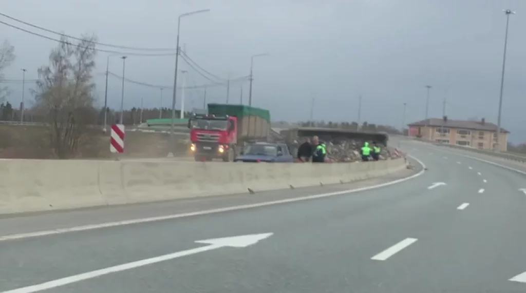 Опубликовано видео с перевернувшимся грузовиком на обходе Калуги