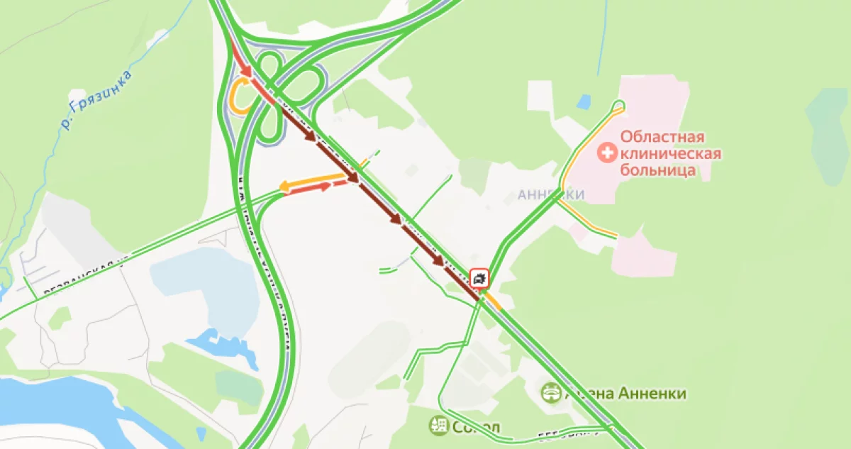 Утром 16 апреля пробка образовалась на подъездной дороге от трассы М3 «Украина» в районе Анненок.