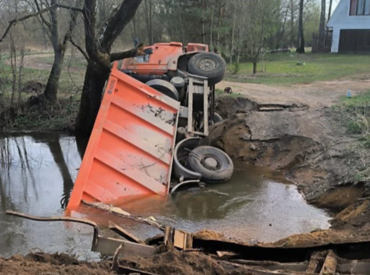 В пятницу, 18 апреля, в селе Рябцево Малоярославецкого района рухнул уличный мост. Это произошло из-за того, что по нему попытался проехать водитель груженого самосвала.