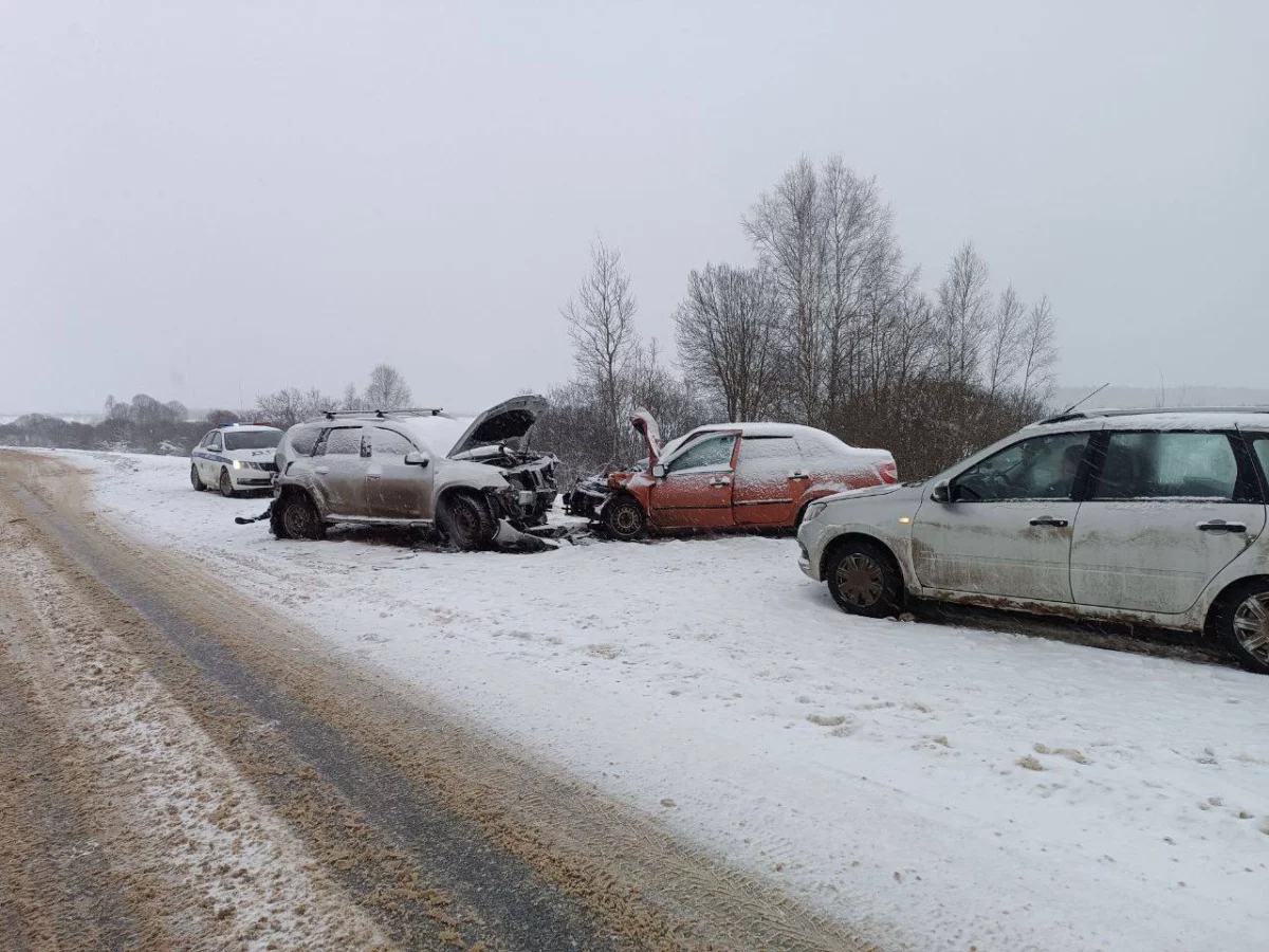 В сложных погодных условиях женщина за рулём автомобиля «Ниссан» не справилась с управлением и столкнулась со встречной «Ладой Грантой» и попутным «MAN» с полуприцепом.