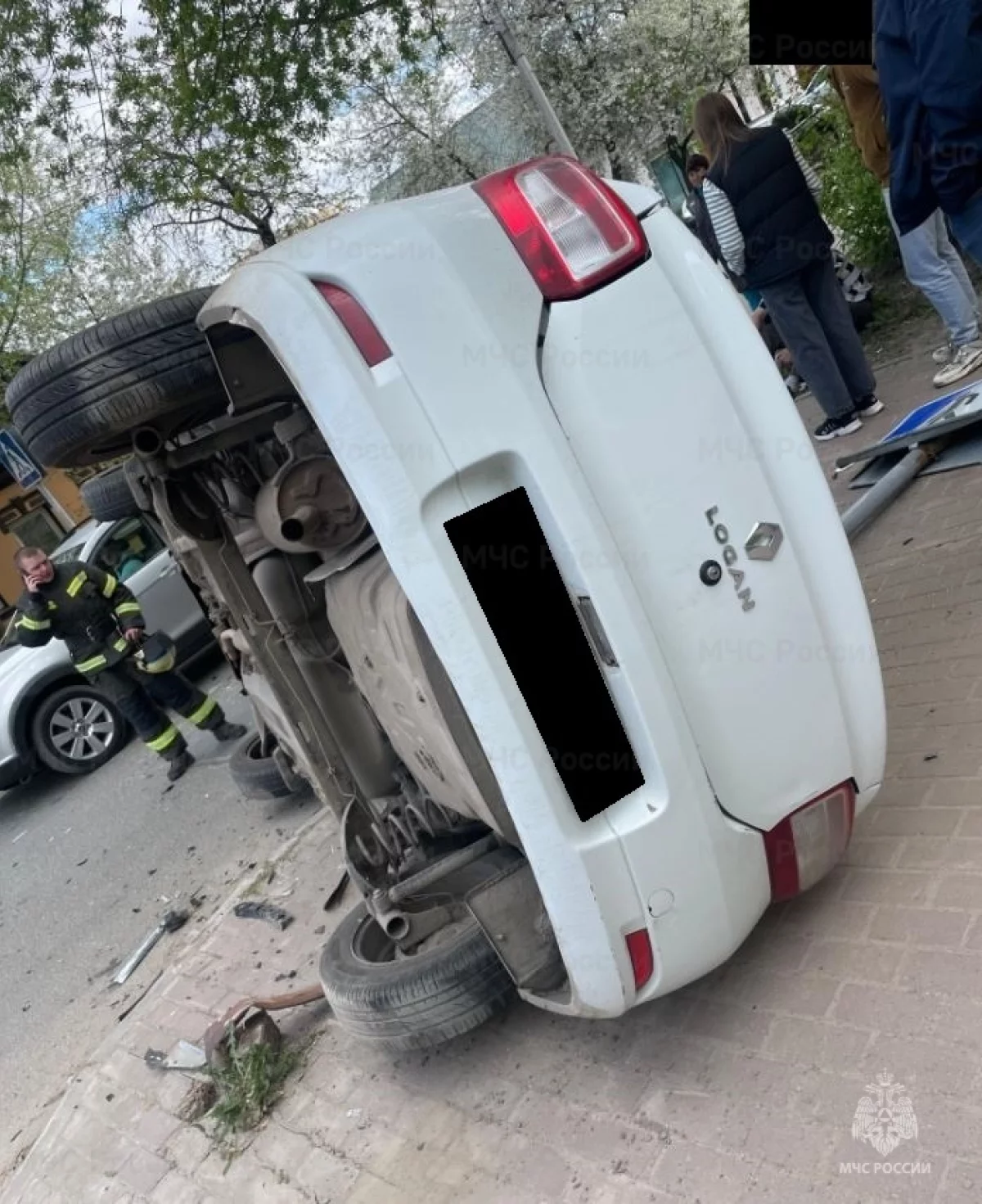 В Калуге «Рено» перевернулся на тротуаре