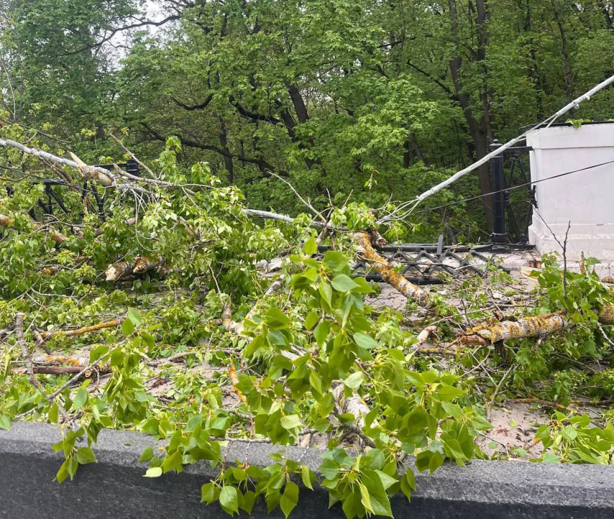 В субботу, 26 апреля, упавшее в Березуйском овраге дерево сломало ограду старинного моста в Калуге.