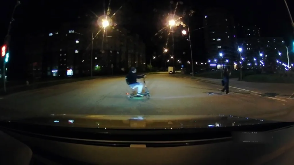 Среагировать на такое бывает очень сложно, особенно, когда самокат едет по зебре не снижая скорость, к тому же в темноте.