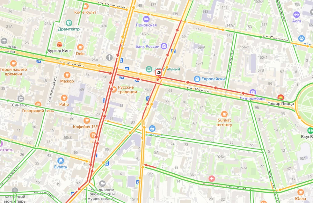 Заторы наблюдаются на Кирова, Ленина, Московской.