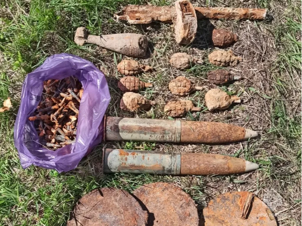 В поле между деревнями Акимовка и Ашково Жиздринского района обнаружены гранаты Ф-1 и М-39, минометная мина, реактивный снаряд и два артиллерийских снаряда.