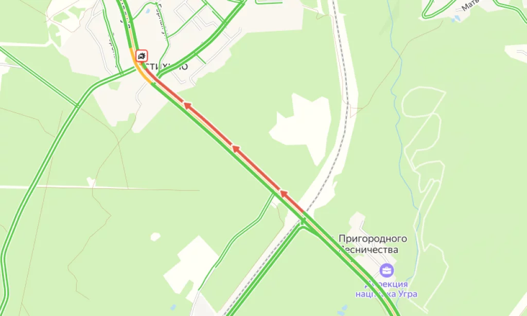 Затруднено движение со стороны Анненок. Пробка растянулась на полтора километра.