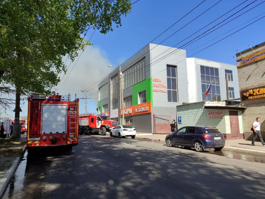 Очевидцы сообщают, что огнем охвачено помещение магазина «Светория», продающего обои, электротовары и светотехнику.