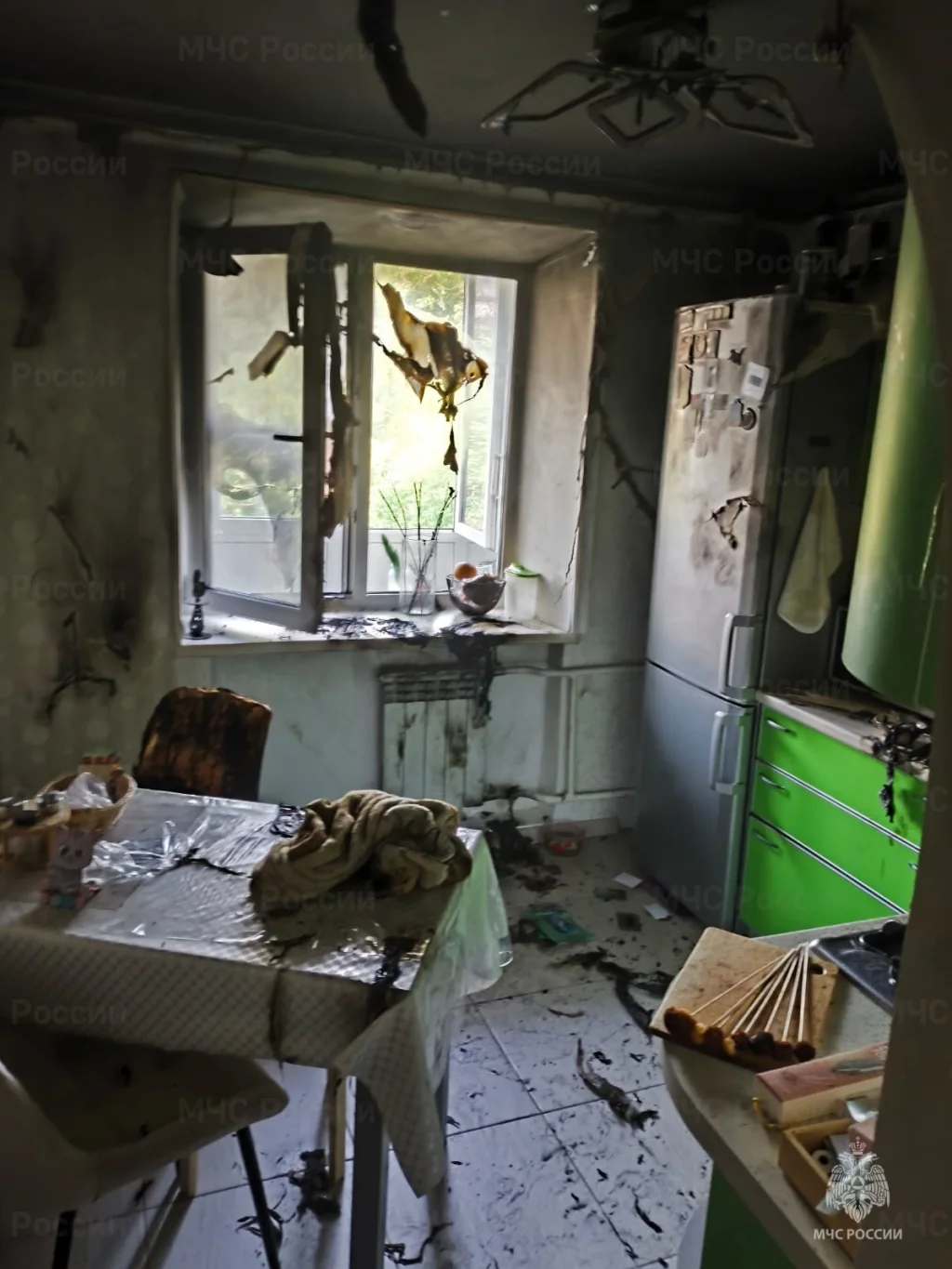 Повреждена отделка кухни.