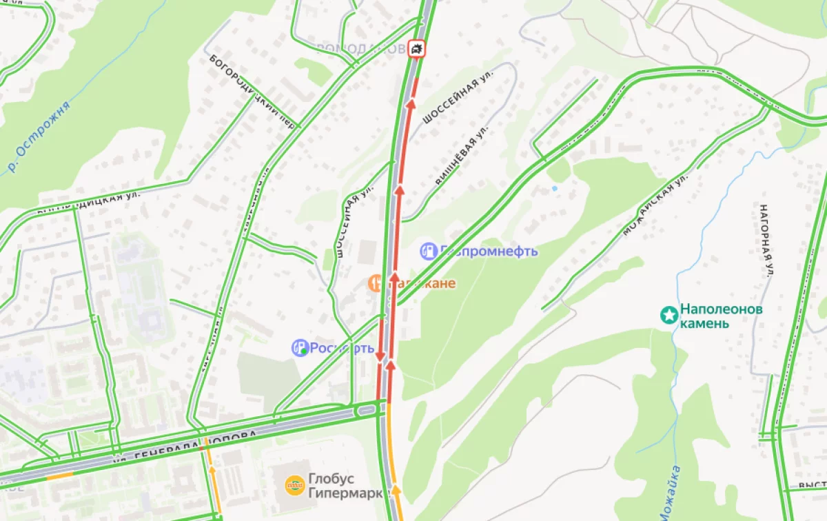 Утром в пятницу, 6 июня, авария произошла на участке между улицей Генерала Попова и Гагаринским мостом.