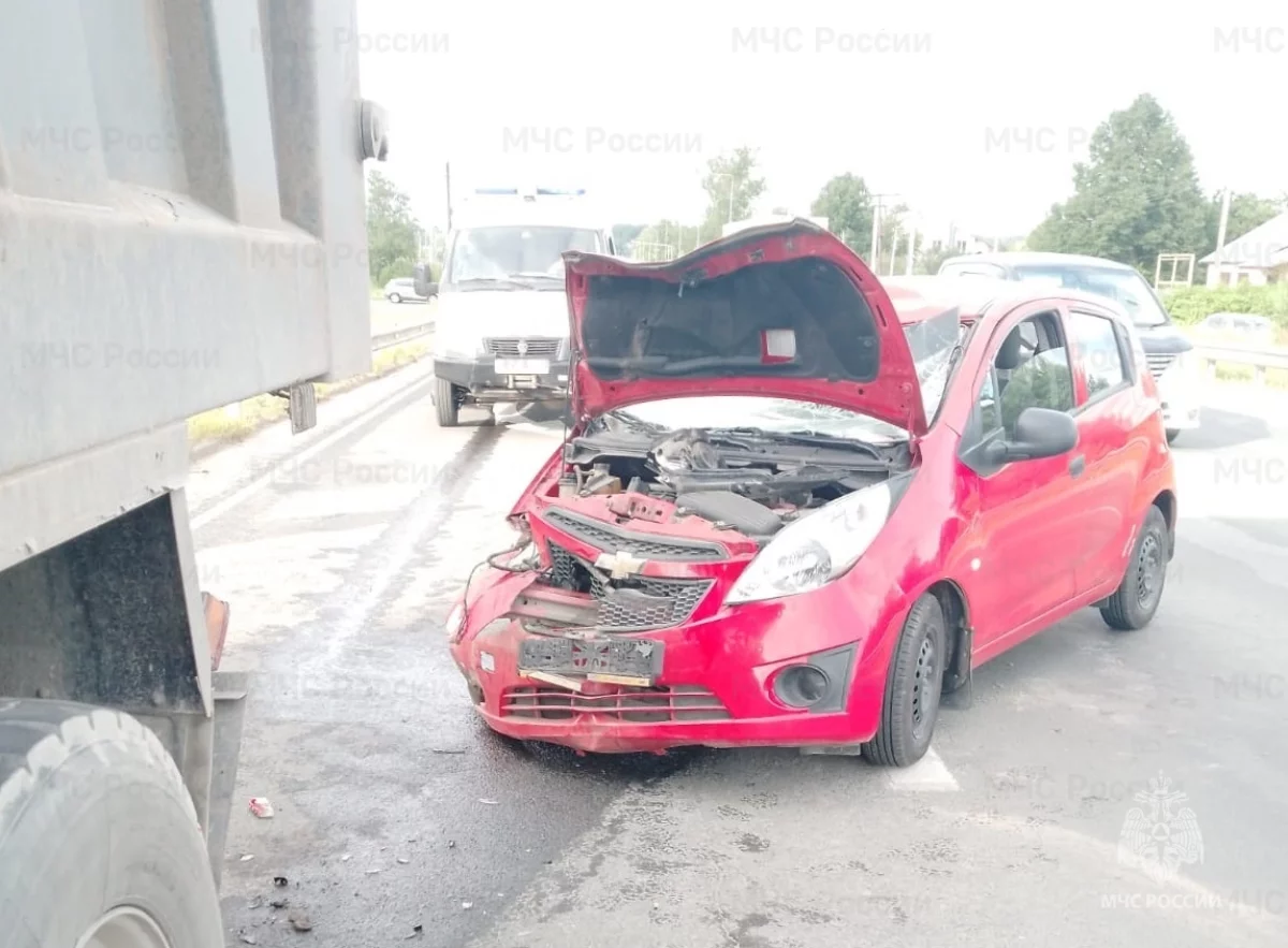 Автомобиль «Шевроле Спарк» врезался в припаркованный грузовик «Шахмат», сообщает ГУ МЧС по Калужской области.