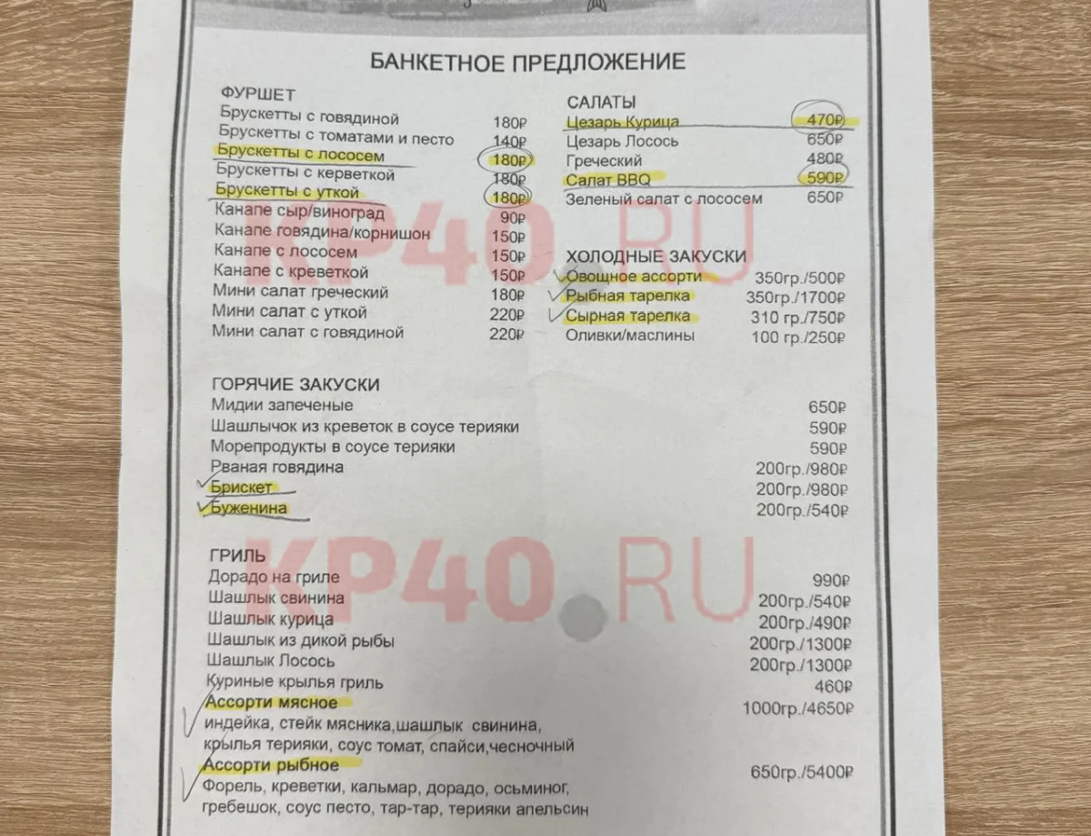 А в распоряжении «КП40» оказалось меню банкетного стола, которые выбрали для праздника. Публикуем его полностью.