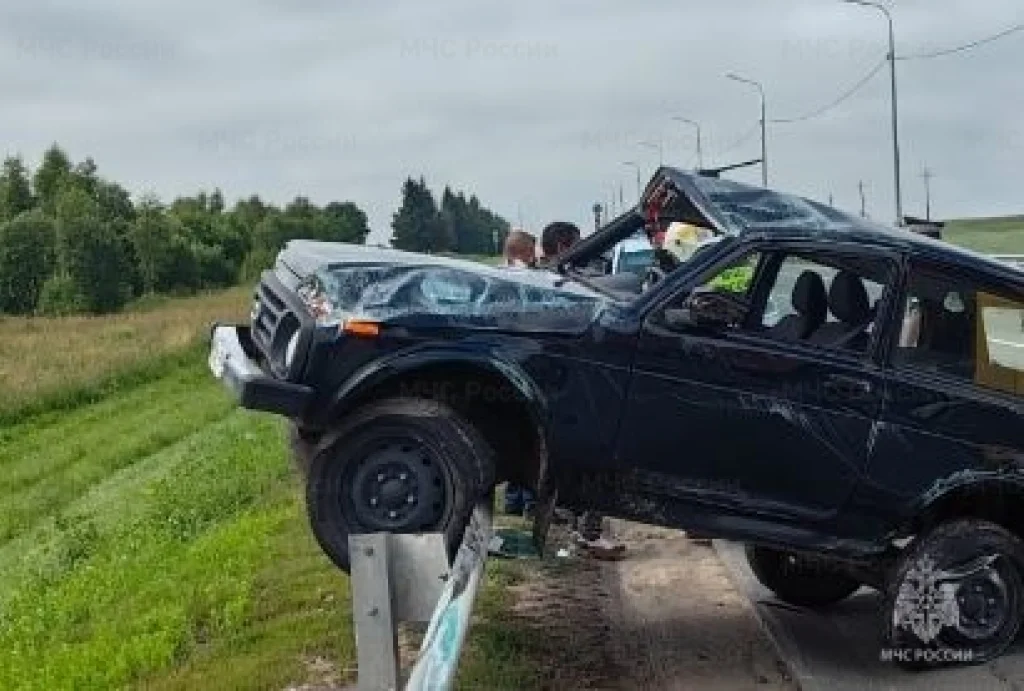 Недалеко от Бабынино столкнулись «Нива» и «Рено Логан». После этого «Ниву» отбросило на металлическое ограждение.
