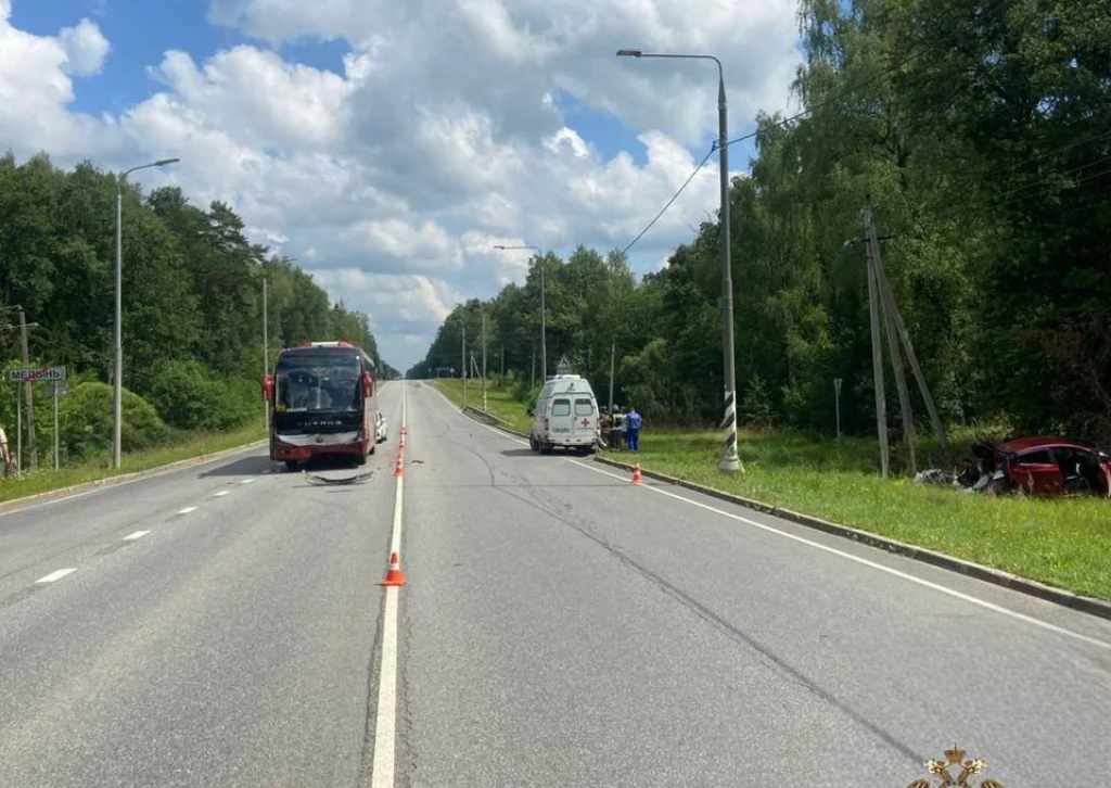 В Калужской области автобус с детьми врезался в легковой автомобиль