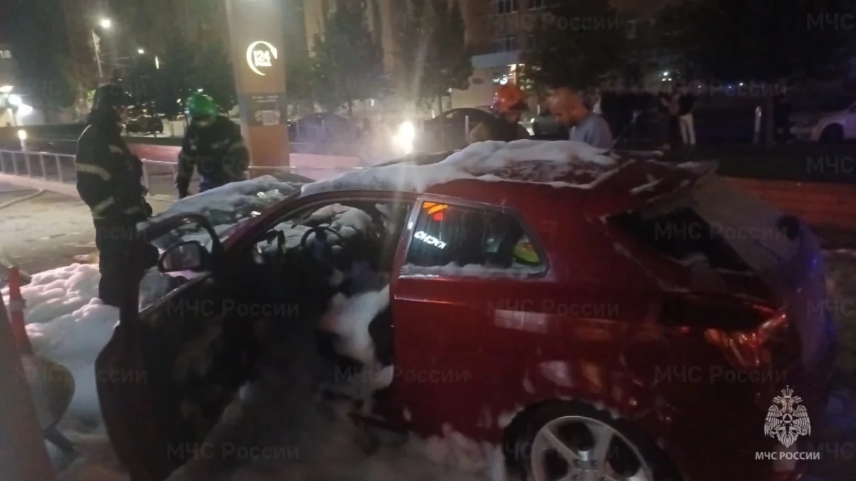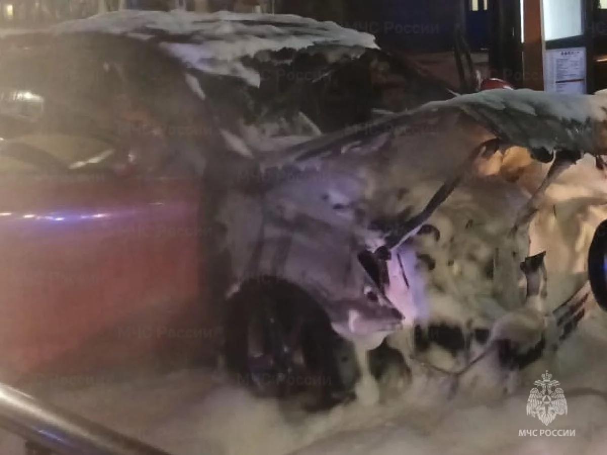 Легковушка вспыхнула в очереди к круглосуточному окошку ресторана быстрого питания.