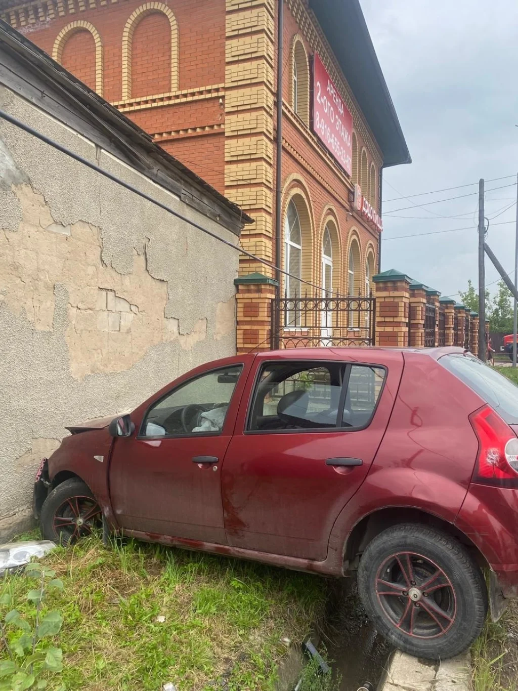Машина съехала с дороги и врезалась в стену здания.