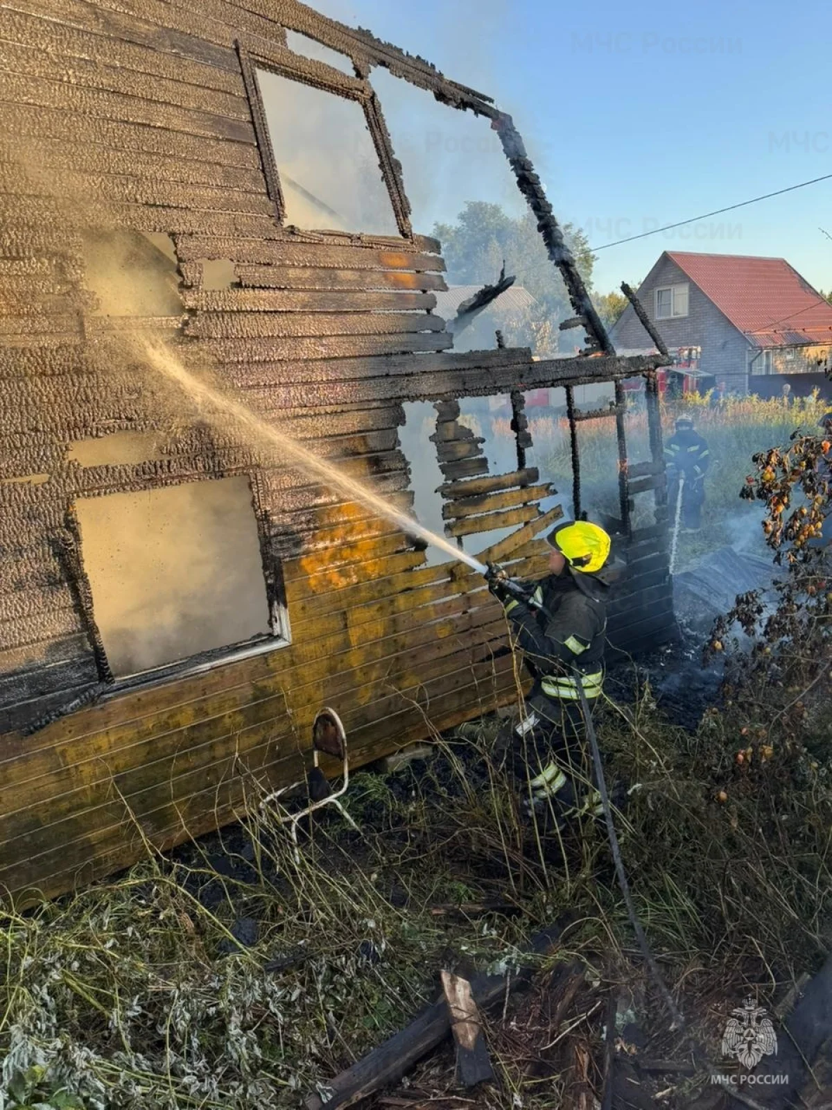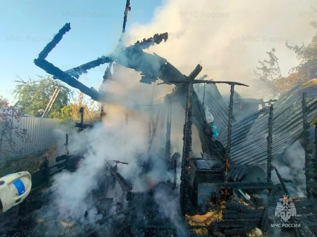 Огнем почти полностью уничтожена деревянная постройка.