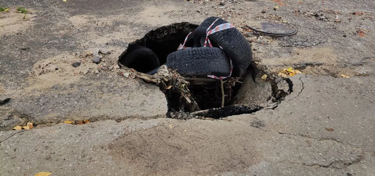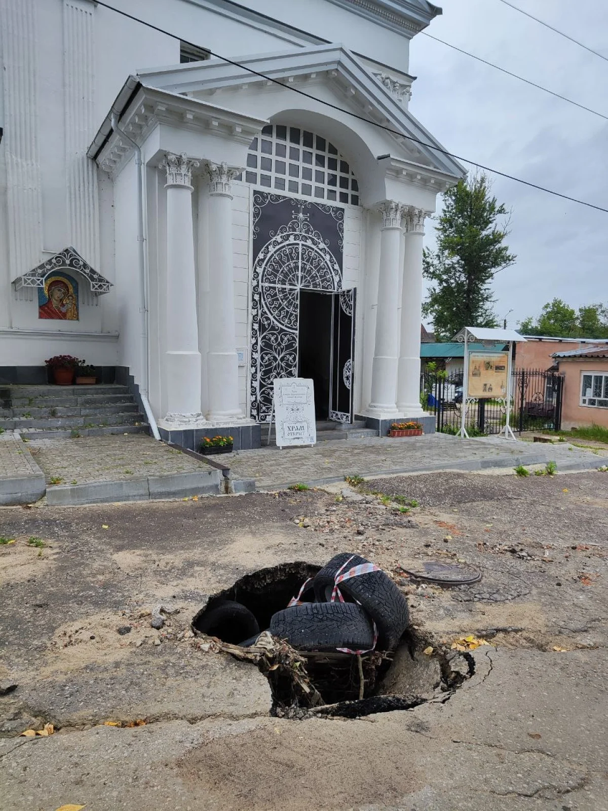 В Калуге провалился асфальт перед старинной церковью